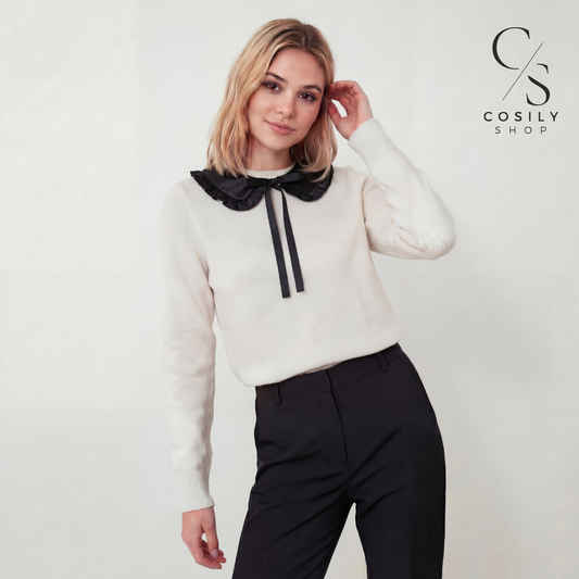 Jedwabny kołnierzyk dopinany - REGULAR z falbanką