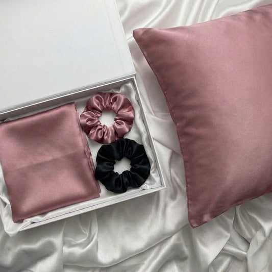 Zestaw - Jedwabna poszewka + dwie gumki do włosów