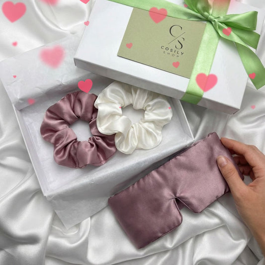 Zestaw - Jedwabna opaska do spania + dwie gumki do włosów