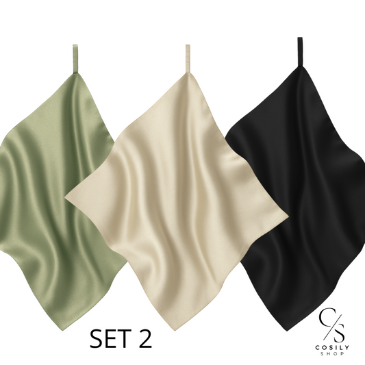 Zestaw trzech jedwabno bambusowych ręczników do twarzy