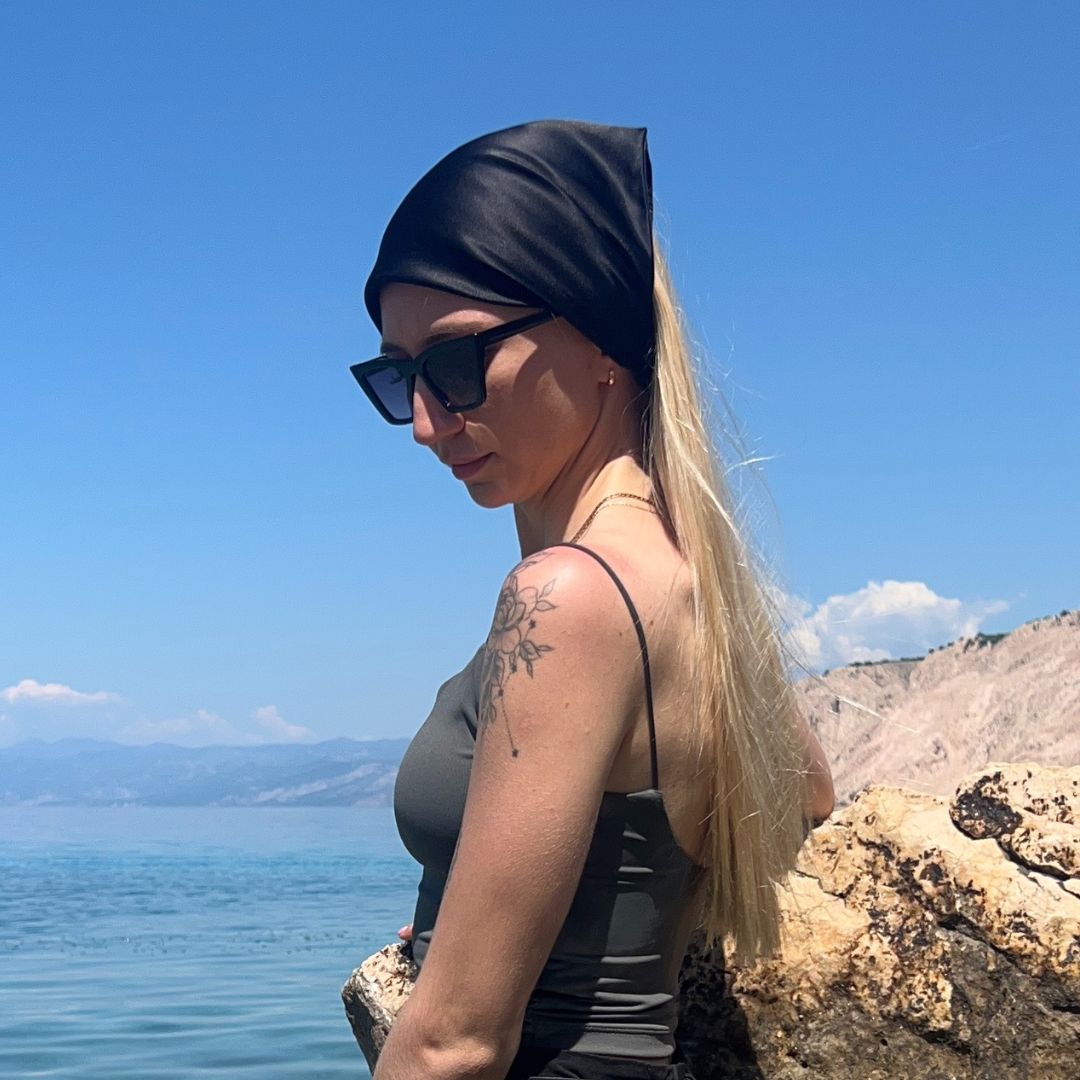 Elastyczna gumka z tyłu zapewnia idealne dopasowanie – chustka nie zsuwa się i nie uciska, a Ty możesz cieszyć się komfortem przez cały dzień.