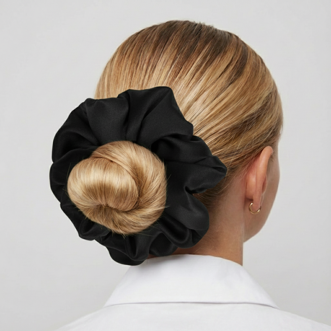 Dzięki większemu rozmiarowi, gumka świetnie sprawdza się w tworzeniu pełnych, eleganckich fryzur, które utrzymują się na miejscu przez cały dzień. Niezależnie od stylizacji, nasza scrunchie zapewnia nie tylko estetykę, ale także wyjątkowy komfort i dbałość o włosy.