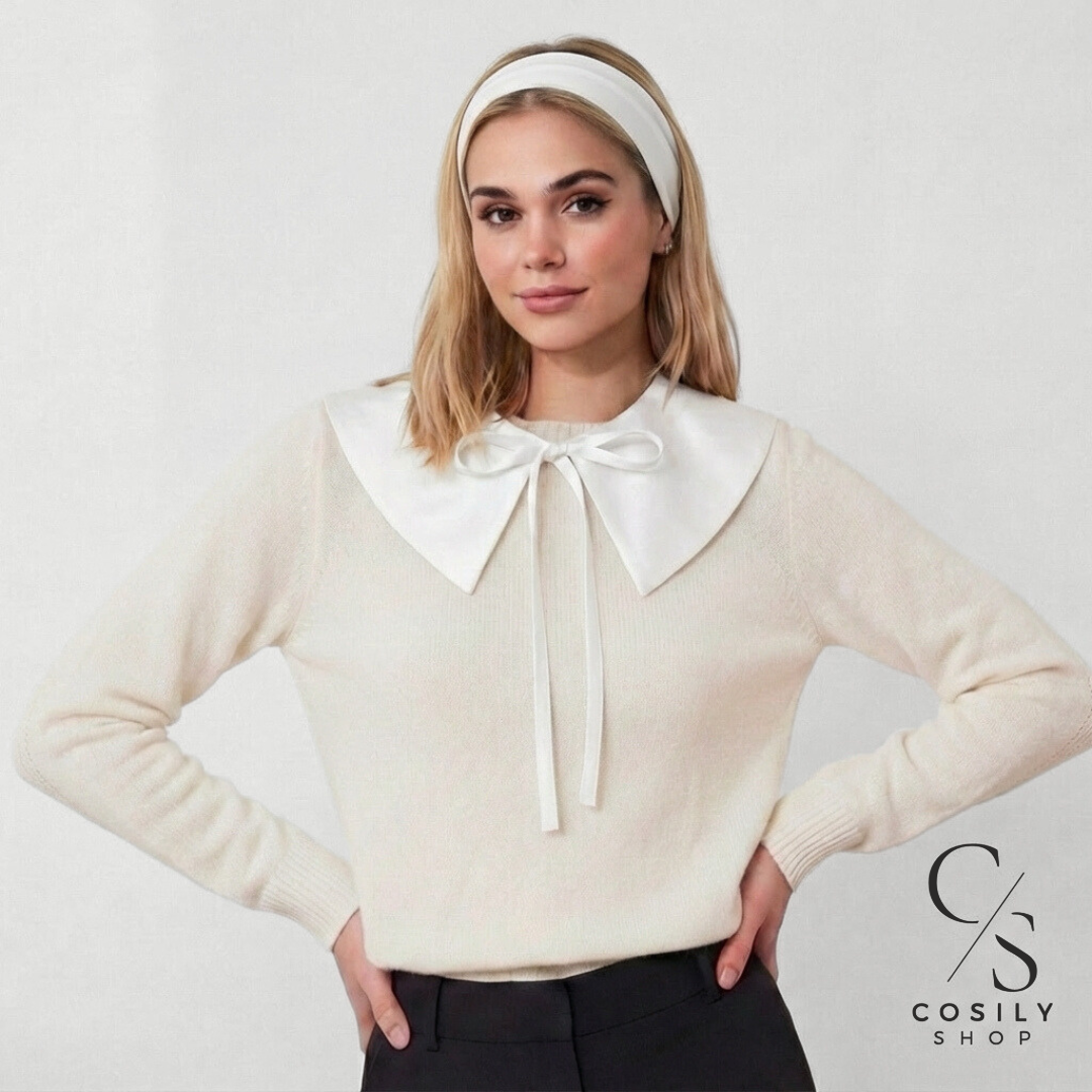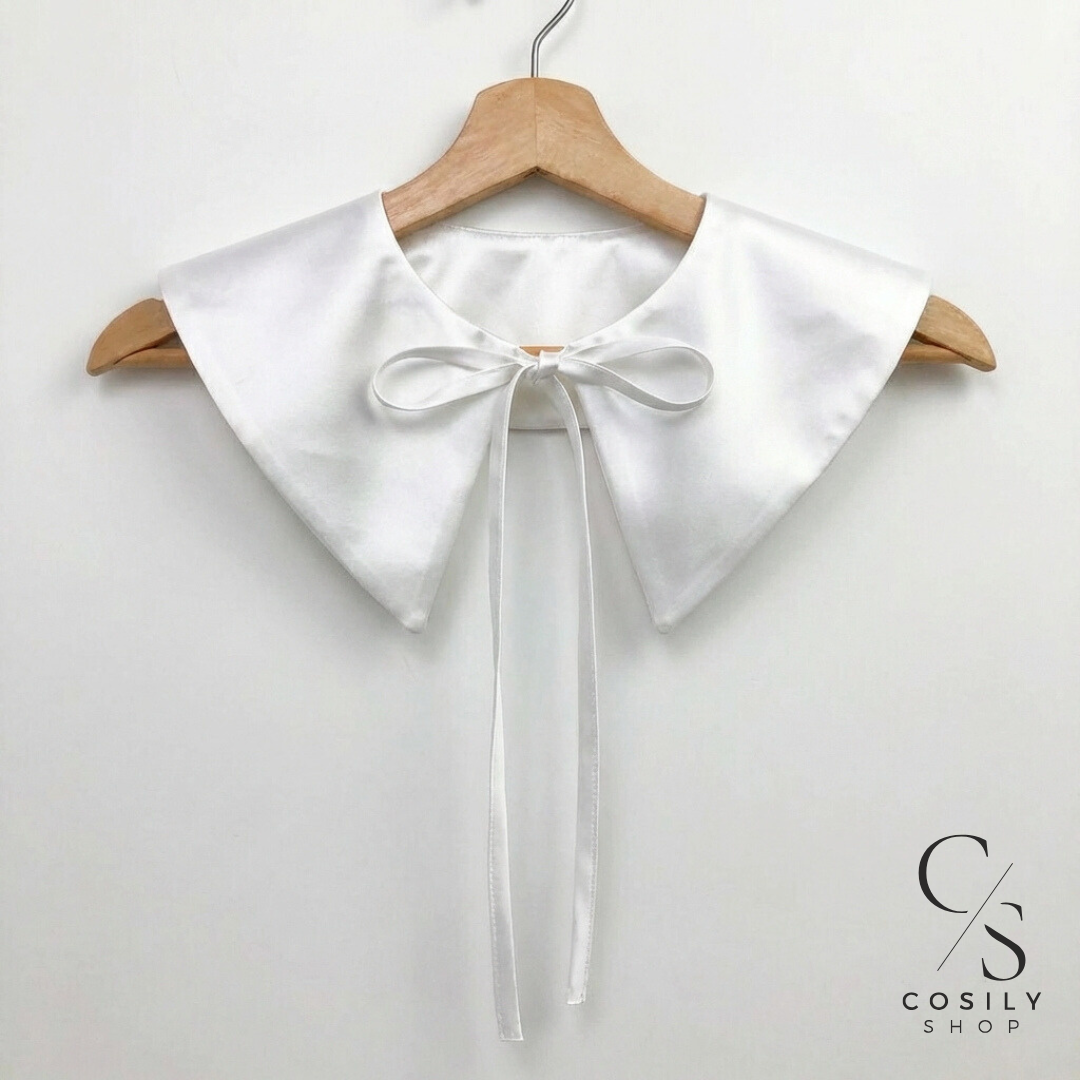 Załóż go do swetra, sukienki lub bluzki, by dodać stylizacji eleganckiego akcentu. Jedwabne troczki pozwalają łatwo dopasować kołnierzyk do różnych dekoltów i zapewniają komfort noszenia przez cały dzień.